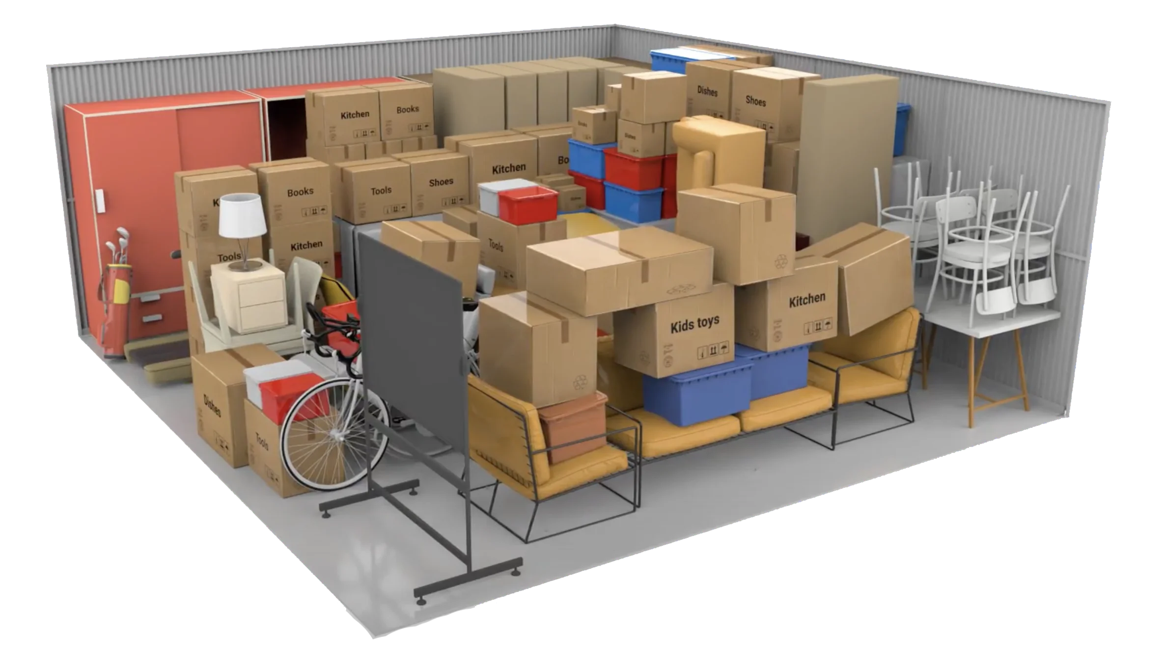 Un 5×5 fait à peu près la taille d’un walk-in. Bien qu’il soit assez petit pour gérer facilement le désordre domestique, la déco saisonnière et les boîtes, il est aussi idéal pour les appareils électroménagers, les petits meubles et les articles comme l’équipement de camping ou de sport. Pensez-y comme à un walk-in qui n’est pas attenant à votre chambre.